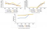 Regional trends analysis shows that there was a decrease in cervical cancer across all the regions. Northern Uganda had the least decrease of 9% and Eastern Uganda having the biggest decrease of 25% over the years (Table 1).